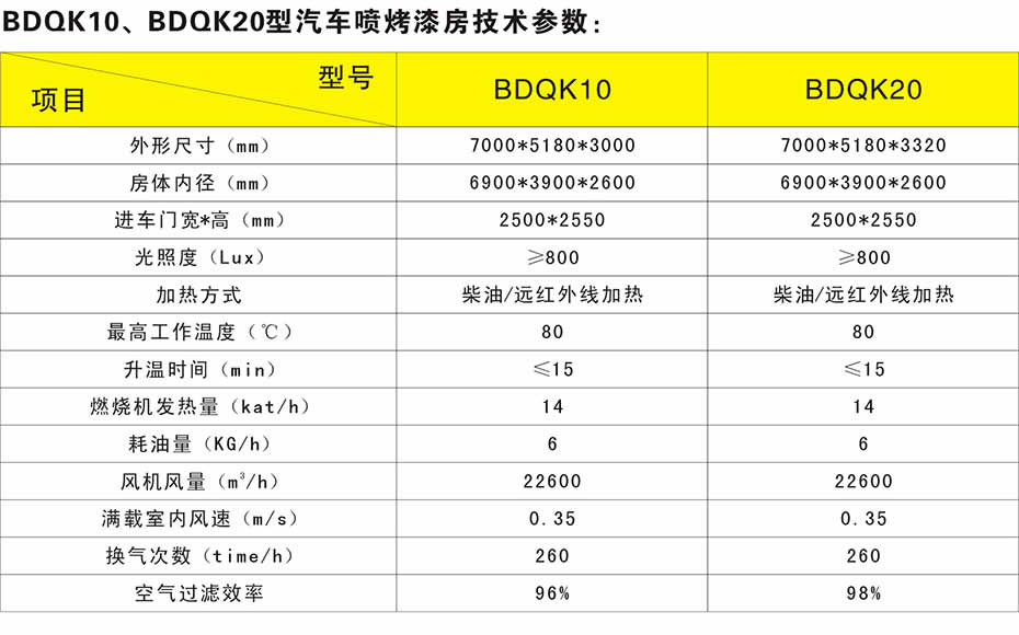 | BDQK10、BDQK20型汽車噴烤漆房 | BDQK30、BDQK50型汽車噴烤漆房 | BDQK60、BDQK80型汽車噴烤漆房 |