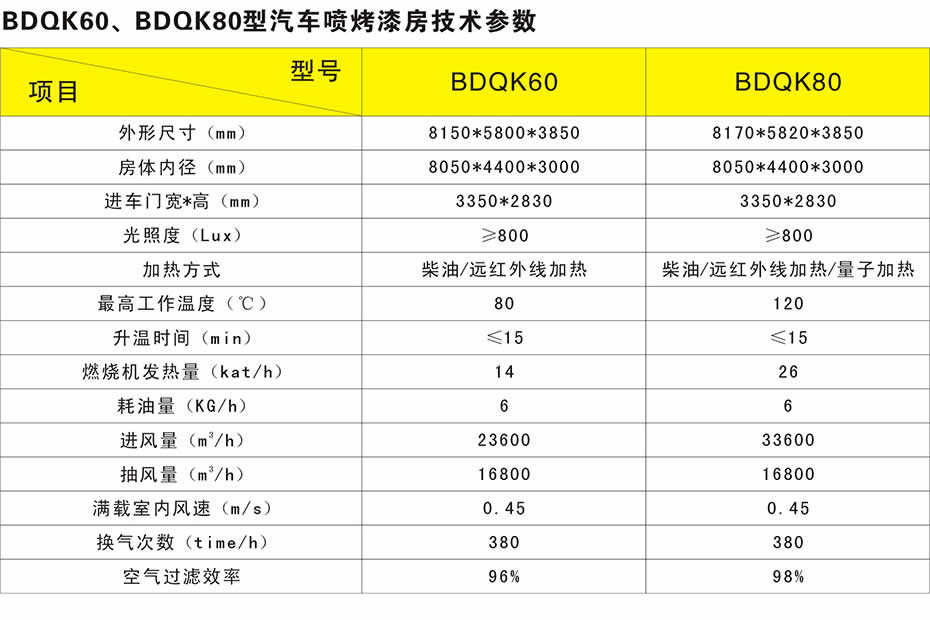 | | | |  | |  | | BDQK60環(huán)保型汽車噴烤漆房 | | BDQK80環(huán)保型汽車豪華噴烤漆房 |